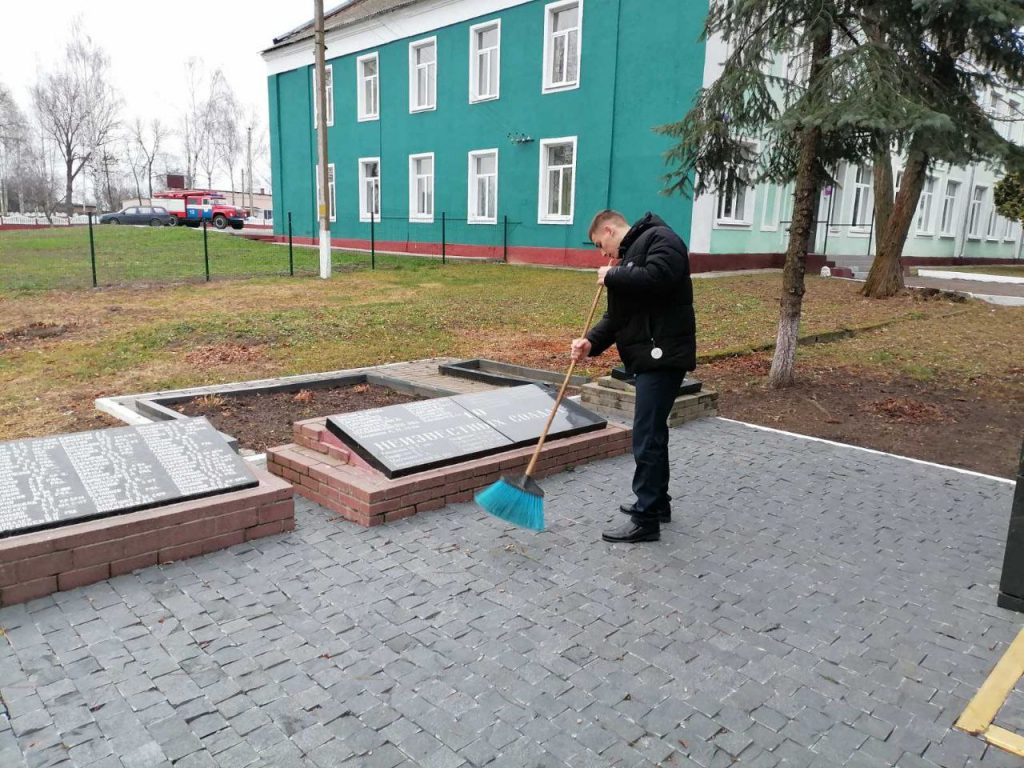 28 ноября ребята из волонтёрского отряда «Лучики добра» проявили замечательную и очень важную инициативу — навели порядок на воинском захоронении в г.п.Стрешине.