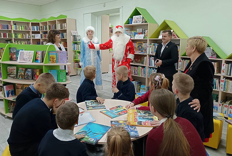 Юные читатели Стрешинский городской библиотеки принимали подарки от Деда Мороза и Снегурочки, которые передали для них член Совета Республики, председатель Гомельского областного Совета депутатов Екатерина Зенкевич и депутаты областного Совета депутатов.